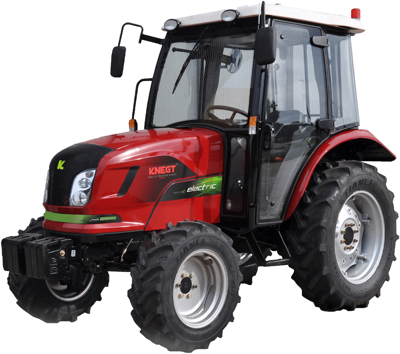 De Knegt 504G3E is een 100% elektrische compacttractor met 65 pk, ontworpen voor zware werkzaamheden in geluidsgevoelige of emissiebeperkte omgevingen. De tractor beschikt over twee elektromotoren (voor rij- en hydraulische functies), 4×4-aandrijving, stuurbekrachtiging en dubbelwerkende hydrauliek. Werktijd tot 8 uur*, met uitbreidingsopties zoals een extra accupakket, cabine of voorlader.